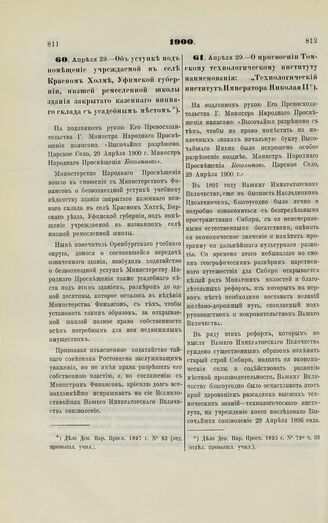1900. Апреля 29. — О присвоении Томскому технологическому институту наименования: «Технологический институт Императора Николая II