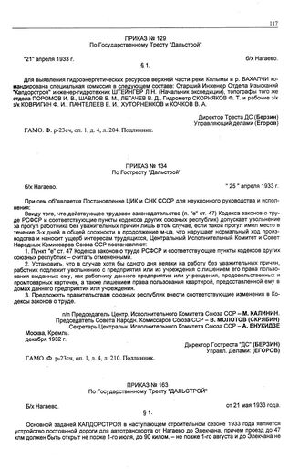 Приказ № 163 по государственному тресту «Дальстрой». б/х Нагаево. 21 мая 1933 г.