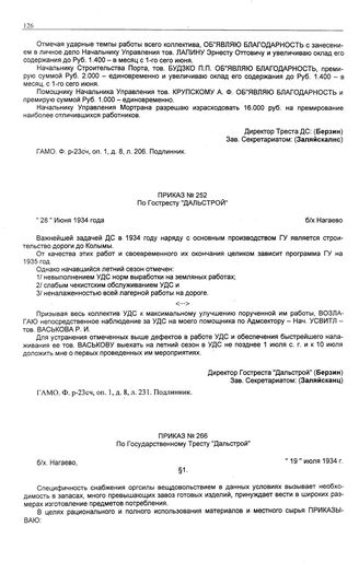 Приказ № 252 по государственному тресту «Дальстрой». б/х Нагаево. 28 июня 1934 г.