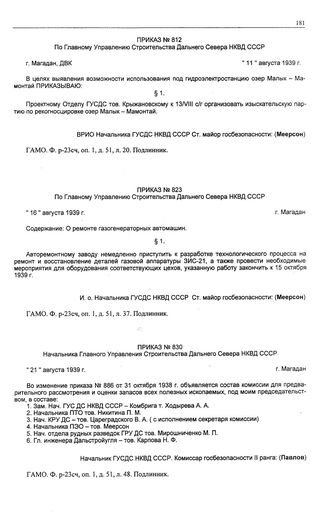 Приказ № 823 по Главному Управлению строительства Дальнего Севера Н...