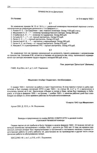 Приказ № 24 по Дальстрою. б/х Нагаево. 3 марта 1932 г. // ГАМО. Ф.р-23сч, оп. 1, д. 1, л. 47. Подлинник.