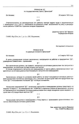 Приказ № 80 по дирекции гостреста «Дальстрой». б/х Нагаево. 3 марта 1933 г.