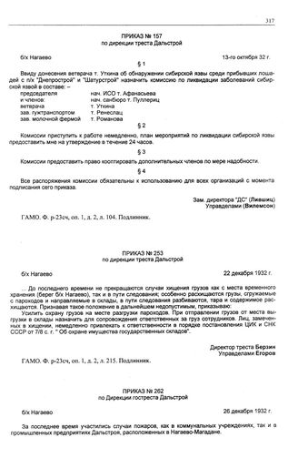 Приказ № 253 по дирекции треста Дальстрой. б/х Нагаево. 22 декабря 1932 г.
