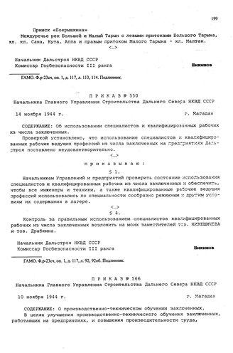 Приказ № 566 Начальника Главного Управления строительства Дальнего Севера НКВД СССР. О производственно-техническом обучении заключенных. г. Магадан. 10 ноября 1944 г.