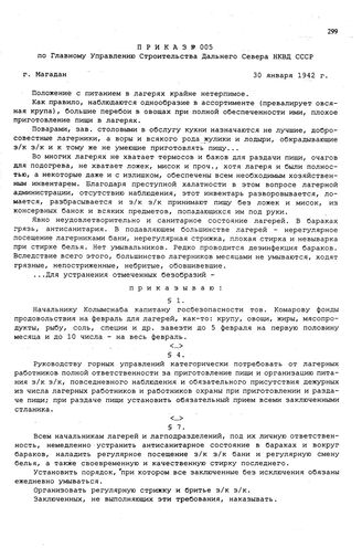 Приказ № 31 по Главному Управлению строительства Дальнего Севера НКВД СССР. г. Магадан. 30 января 1942 г.