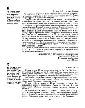 Из сводки штаба 220-го пограничного ордена Кутузова полка войск по охране тыла 1-го Прибалтийского фронта об оперативной обстановке в районе действий полка за период с 29 мая по 13 июня 1945 г. 14 июня 1945 г.