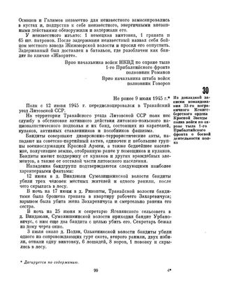 Из докладной записки командования 33-го пограничного Кенигсбергского ордена Красной Звезды полка войск по охране тыла 1-го Прибалтийского фронта о боевой деятельности полка. Не ранее 9 июля 1945 г.