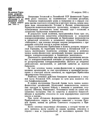Из доклада Управления пограничных войск Прибалтийского округа об обстановке в пограничной полосе в первом полугодии 1945 г. 15 августа 1945 г.