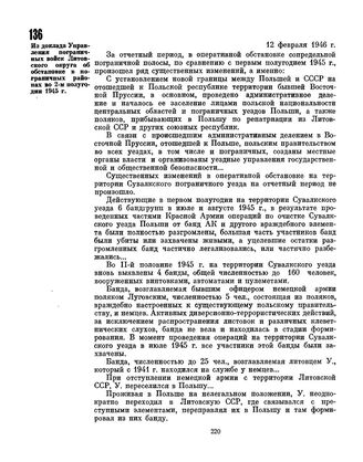 Из доклада Управления пограничных войск Литовского округа об обстановке в пограничных районах во 2-м полугодии 1945 г. 12 февраля 1946 г.