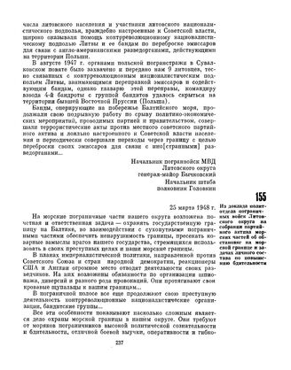 Из доклада политотдела пограничных войск Литовского округа на собрании партийного актива морских частей об обстановке на морской границе и задачах личного состава по повышению бдительности. 25 марта 1948 г.