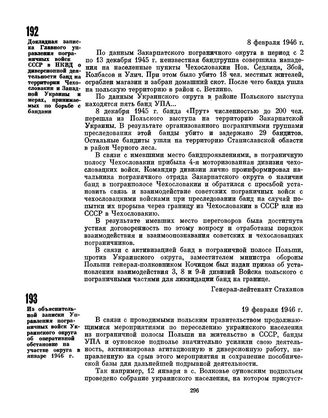 Докладная записка Главного управления пограничных войск СССР в НКВД о диверсионной деятельности банд на территории Чехословакии и Западной Украины и мерах, принимаемых по борьбе с бандами. 8 февраля 1946 г.