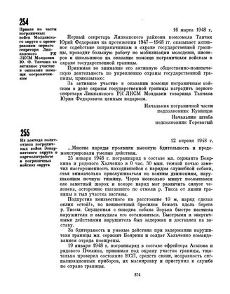 Приказ по части пограничных войск Молдавского округа о премировании первого секретаря Липканского РК ЛКСМ Молдавии Ю.Ф. Танчака за активное участие в оказании помощи пограничникам. 16 марта 1948 г.