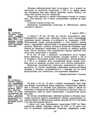 Из сообщения Главного управления пограничных войск СССР в МИД СССР о провокационных действиях иранских солдат на советско-иранской границе и расследовании инцидента, проведенного пограничными комиссарами СССР и Ирана. 5 июля 1949 г.
