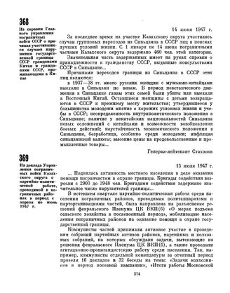 Из доклада Управления пограничных войск Казахского округа о партийно-политической работе, проводимой в пограничных районах в период с апреля по июнь 1947 г. 15 июля 1947 г.