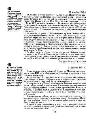 Из сообщения Главного управления пограничных войск СССР в МИД СССР о прибытии к командованию советских пограничных войск представителей Народно-освободительной армии Китая. 26 декабря 1946 г.