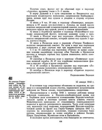 Из доклада Управления пограничных войск на Тихом океане об обстановке на государственной границе СССР и результатах деятельности войск округа за 1947 г. 12 января 1948 г.