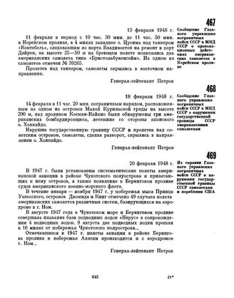 Из справки Главного управления пограничных войск СССР о нарушении государственной границы СССР самолетами и кораблями США. 20 февраля 1948 г.