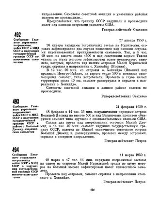 Сообщение Главного управления пограничных войск СССР в МИД СССР о нарушении государственной границы СССР неизвестными самолетами. 27 января 1950 г.