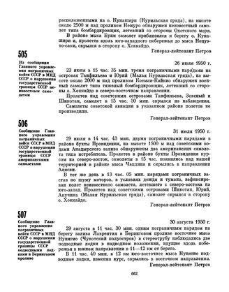 Сообщение Главного управления пограничных войск СССР в МИД СССР о нарушении государственной границы СССР американскими самолетами. 31 июля 1950 г.