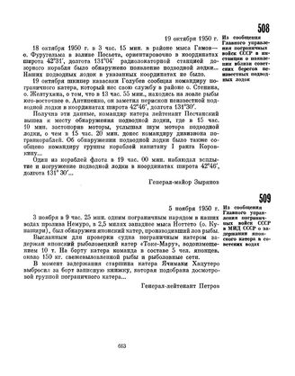 Из сообщения Главного управления пограничных войск СССР в МИД СССР о задержании японского катера в советских водах. 5 ноября 1950 г.