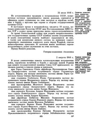 Записка заместителя министра внутренних дел СССР министру внутренних дел СССР о присвоении пограничным заставам имен пограничников, героически погибших при защите государственной границы СССР. 24 июля 1946 г.