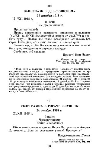 Записка Ф.Э. Дзержинскому. 21 декабря 1918 г. // Печатается по тексту Полн. собр. соч. В.И. Ленина, том 50, стр. 222—223.