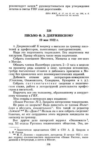 Письмо Ф.Э. Дзержинскому. 19 мая 1922 г.
