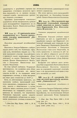 1896. Июня 26. — Об учреждении при Юрьевской учительской семинарии одной стипендии в память Священного Коронования Их Императорских Величеств. Высочайше разрешенный всеподданнейший доклад