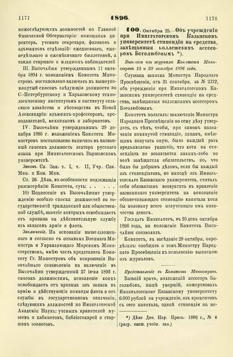 1896. Октября 25. — Об учреждении при Императорском Казанском университете стипендии на средства, завещанные коллежским ассесором Боголюбовым. Выписка из журнала Комитета Министров 15 и 29 октября 1896 года