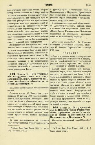 1896. Ноября 18. — Об утверждении нагрудного знака для лиц, окончивших курсы института сельского хозяйства и лесоводства в Новой Александрии. Высочайше утвержденный всеподданнейший доклад
