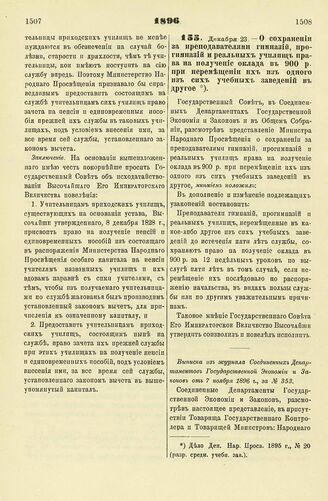1896. Декабря 23. — О сохранении за преподавателями гимназий, прогимназий и реальных училищ права на получение оклада в 900 р. при перемещении их из одного из сих учебных заведений в другое