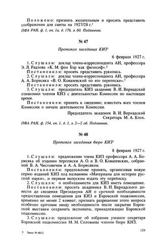 Протокол заседания КИЗ. 6 февраля 1927 г.