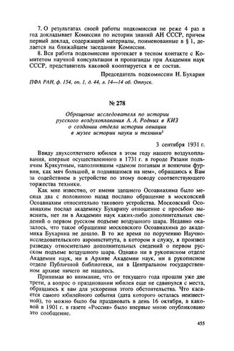Главная Комиссия по истории знаний. 1921-1932 гг. Из истории организации ис... Обращение исследователя по истории русского воздухоплавания А. А. Р...