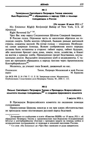 Письмо Святейшего Патриарха Тихона в Президиум Всероссийского комитета помощи голодающим о создании Церковного комитета. 5 августа 1921 г. // Помощь. Бюллетень Всероссийского комитета помощи голодающим. 22 августа 1921 г., № 2. Опубликовано с преамбулой: «Патриарх Тихон обратился в Президиум Всероссийского комитета помощи голодающих с письмом».