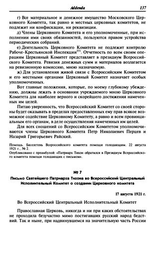 Письмо Святейшего Патриарха Тихона во Всероссийский Центральный Исполнительный Комитет о создании Церковного комитета. 17 августа 1921 г.