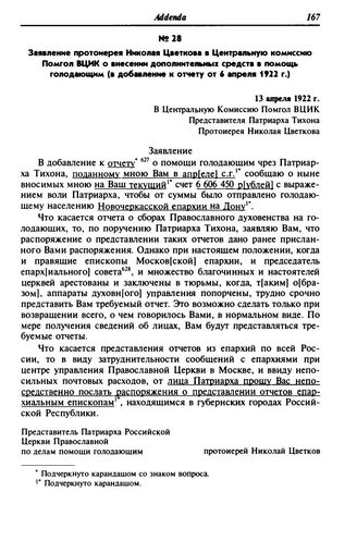 Заявление протоиерея Николая Цветкова в Центральную комиссию Помгол ВЦИК о внесении дополнительных средств в помощь голодающим (в добавление к отчету от 6 апреля 1922 г.). 13 апреля 1922 г.