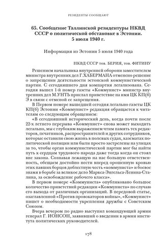 Сообщение Таллинской резидентуры НКВД СССР о политической обстановке в Эстонии. 5 июля 1940 г. // Архив СВР России. Печатается по: Прибалтика и геополитика. Сборник документов (1935–1945) / Сост. Л.Ф. Соцков. М., 2006. С. 74–76.