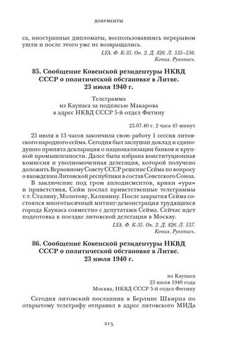 Резиденты сообщают…: Сб. док. о политической обстановке в Латвии, Литве и Эстонии, август 1939 г.-август 1940 г. — М.: Фонд «Ист. память», 2020.