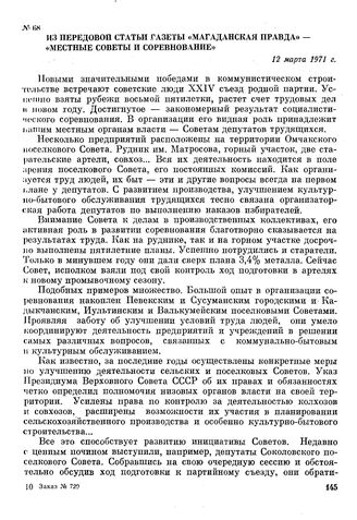 Из передовой статьи газеты «Магаданская правда» — «Местные Советы и соревнование». 12 марта 1971 г. // Магаданская правда, 1971, 12 марта
