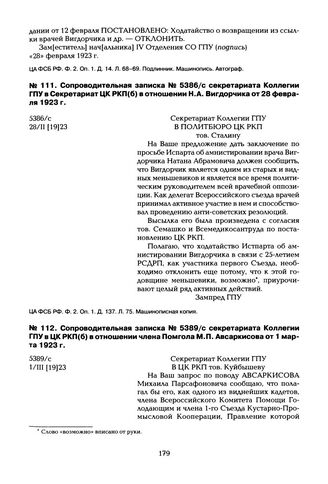 Сопроводительная записка № 5386/с секретариата Коллегии ГПУ в Секретариат ЦК РКП(б) в отношении Н.А. Вигдорчика от 28 февраля 1923 г. // ЦА ФСБ РФ. Ф. 2. Оп. 1. Д. 137. Л. 75. Машинописная копия.