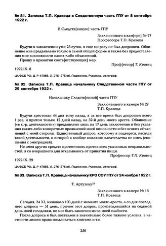 Записка Т.П. Кравеца начальнику КРО СОУ ГПУ от 24 ноября 1922 г. // ЦА ФСБ РФ. Д. Р-47866. Л. 298-298 об. Подлинник. Рукопись. Автограф.
