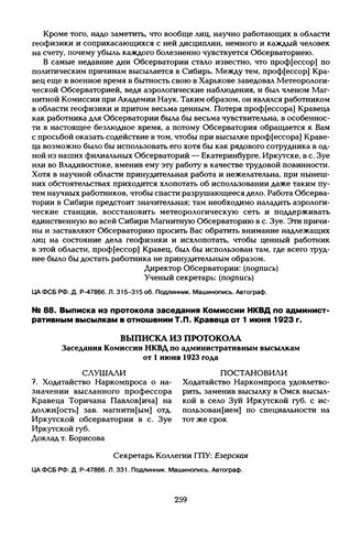 Выписка из протокола заседания Комиссии НКВД по административным высылкам в отношении Т.П. Кравеца от 1 июня 1923 г.