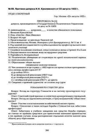 Протокол допроса И.И. Куколевского от 22 августа 1922 г. // ЦА ФСБ РФ. Д. Р-47874. Л. 8, 11-12 об. Подлинник. Рукопись. Автограф.