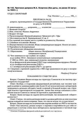 Протокол допроса М.А. Осоргина (без даты, не ранее 22 августа 1922 г.)