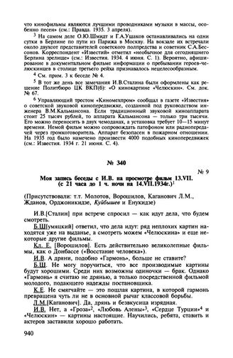 Записи бесед Б.З. Шумяцкого с И.В. Сталиным при просмотре кинофильмов. Моя запись беседы с И.В. на просмотре фильм 13.VII. (с 21 часа до 1 ч. ночи на 14.VII.1934 г.)