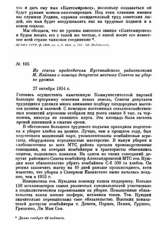 Из статьи председателя Кустанайского райисполкома М. Найпака о помощи депутатов местных Советов на уборке урожая. 27 октября 1954 г. // Известия, 1954, 27 окт.