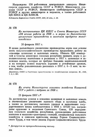 Великий подвиг партии и народа — массовое освоение целинных и залежных земель: Сб. док. и материалов. — М.: Наука, 1979.