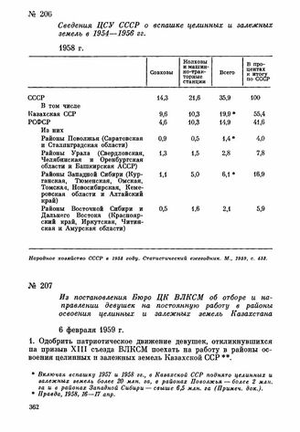 Сведения ЦСУ СССР о вспашке целинных и залежных земель в 1954—1956 гг. 1958 г. // Народное хозяйство СССР в 1958 году. Статистический ежегодник. М., 1959, с. 433.