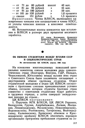 Об обмене студентами между вузами СССР и социалистических стран. Из постановления ЦК ВЛКСМ, апрель 1966 года // ЦА ВЛКСМ.