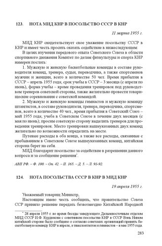 Нота МИД КНР в посольство СССР в КНР. 11 марта 1955 г.
